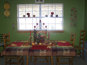 I am glad it finally feels like fall though. I have had enough of the insane heat we have had this year! Now that it feels like fall, I can actually change out my decorations. "But Gem," you say, "there was nothing preventing you from decorating earlier." That is very true, my dear friends, but it is hard to get in the spirit when you walk outside and it is 90 degrees. Here is my dining room table which, aside from the tree during Christmas, is always the focal point of all my seasonal decorating.