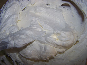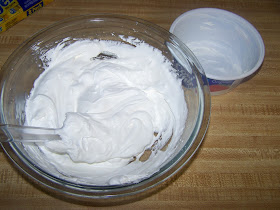 This is another important step. You want to fold the whipped topping into the cream cheese. Don't use the mixer for this and don't over stir. You want to end up with a texture and consistency like this.