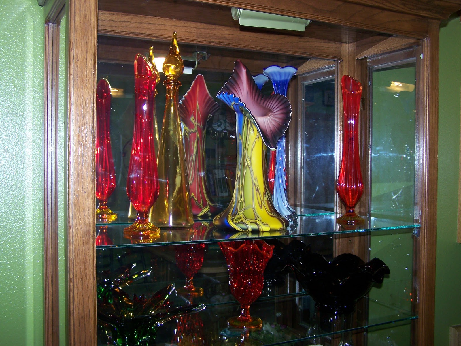Here are some of the pieces I currently have and, as you can see, they are protected from small children by being displayed in a lighted glass fronted curio cabinet that my Dad built for me.