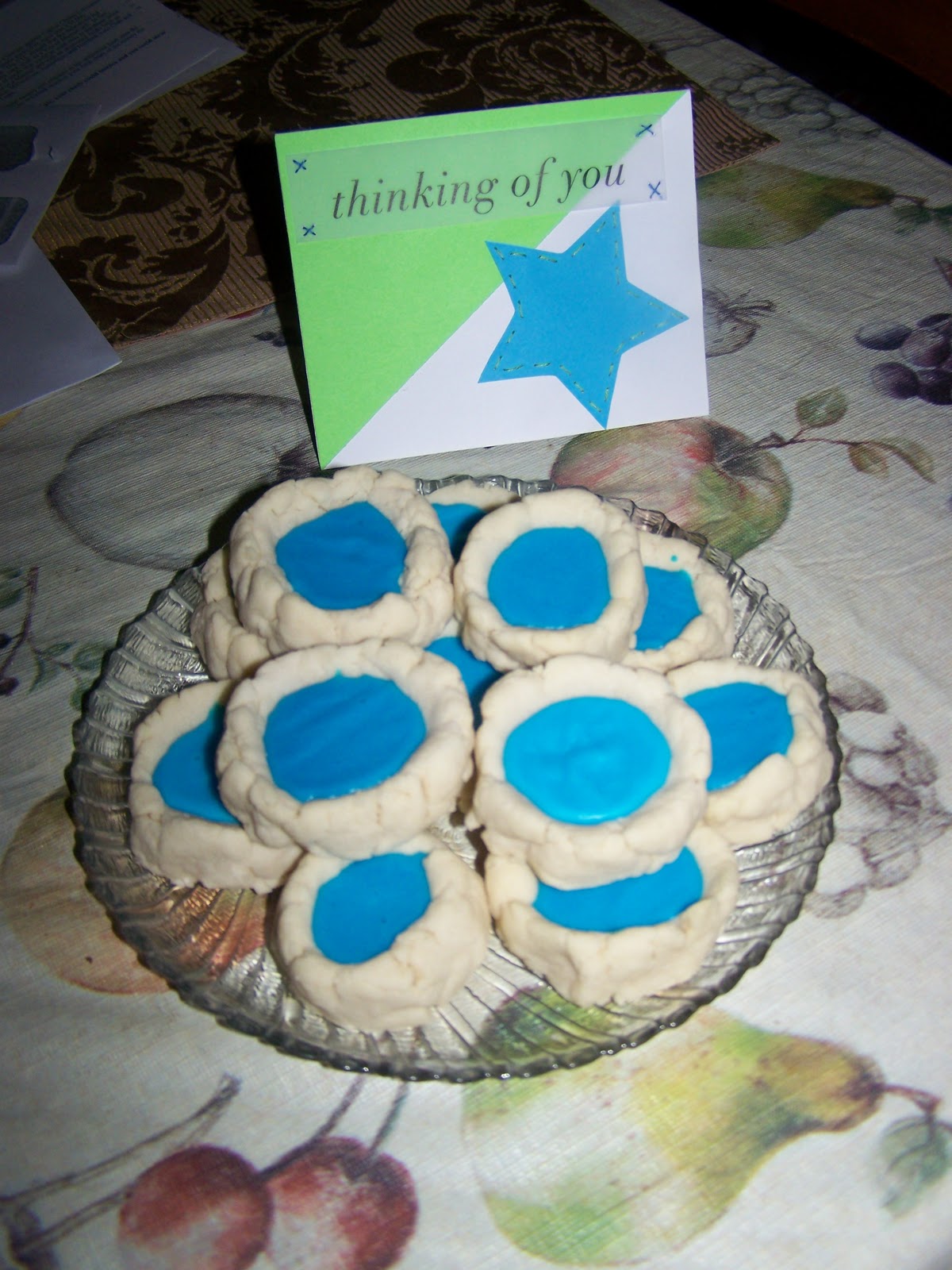 Tasty thumbprint cookies (I will have to post my recipe sometime) and a handmade card for my best friend.