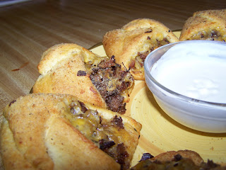 Preheat oven to 375F. Once again chop up your brisket and heat it up with some of the gravy. Unroll your crescent rolls and place them on a cookie sheet. I would recommend spraying the cookie sheet with nonstick spray as I had a little bit of a tough time getting them off the sheet after cooking.