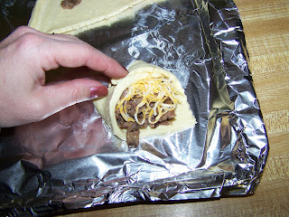 Preheat oven to 375F. Once again chop up your brisket and heat it up with some of the gravy. Unroll your crescent rolls and place them on a cookie sheet. I would recommend spraying the cookie sheet with nonstick spray as I had a little bit of a tough time getting them off the sheet after cooking.