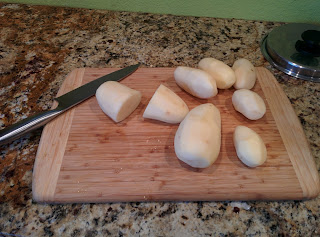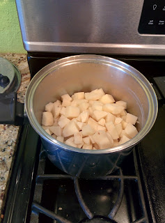 While they are cooking, go ahead and get out some russet potatoes and peel them.