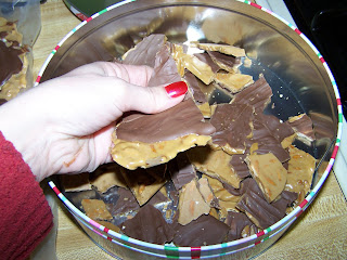 *DON'T JUDGE THE CHOCOLATE BY LOOKS ALONE! A mistake I made for many years. "Hey, that chocolate looks ready, I can break it up now." Only to find that almost every piece of toffee has my fingerprint imprinted in the chocolate. Again, not appealing when giving it to others.