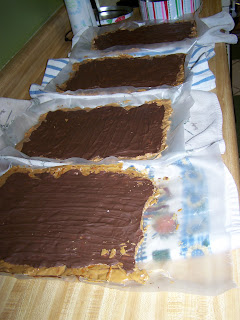 Unwrap 3 Hershey bars and lay them on top of the toffee.